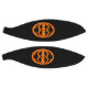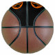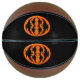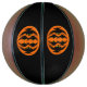 This awesome basketball features an orange oval with six crows in it. Each crow has yellow eyes with black pupils and outstretched wings. The crows are flying towards each other forming an oval shape. The background is black.