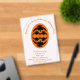 This awesome Halloween party acrylic invitation features an orange oval with six crows in it. Each crow has yellow eyes with black pupils and outstretched wings. The crows are flying towards each other forming an oval shape. There is custom text so you can personalise this design with a name and the occasion as well as all the important details.