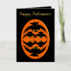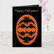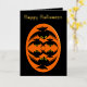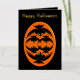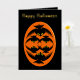 This awesome Foil Halloween card features an orange oval with six crows in it. Each crow has yellow eyes with black pupils and outstretched wings. The crows are flying towards each other forming an oval shape. The background is black. There is custom text inside so you can personalise this card. The custom text on the front is in beautiful gold foil.
