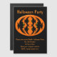 This awesome magnetic party invitation features an orange oval with six crows in it. Each crow has yellow eyes with black pupils and outstretched wings. The crows are flying towards each other forming an oval shape. The background is black.