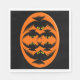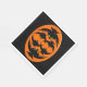 This awesome set of paper napkins features an orange oval with six crows in it. Each crow has yellow eyes with black pupils and outstretched wings. The crows are flying towards each other forming an oval shape. The background is black.