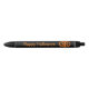 This awesome personalised pen features an orange oval with six crows in it. Each crow has yellow eyes with black pupils and outstretched wings. The crows are flying towards each other forming an oval shape. The background is black. There is customisable text on the pen so you can personalise it with message of your choice.