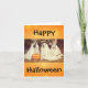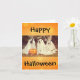 A funny Halloween card featuring dogs wearing cute ghost costumes and a pumpkin. Trick or treat!