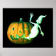 Cute ghost coming out of a scary looking Jack O Lantern. Halloween design by Susan.