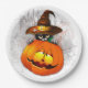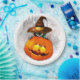 Halloween Cute Kitty Witch and Pumpkin Friend Paper Plate