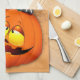 Halloween Cute Kitty Witch and Pumpkin Friend Tea Towel