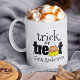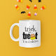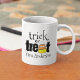 Trick or Treat with these cute, funny, and whimsical Halloween candy corn. These adorable little candy corns are happy and ready to add fun to your Halloween festivities. Whimsical orange, yellow and black candy with drawn smiling eyes and smiling faces are cute and can be customised to your liking. This design features Halloween cute candy corn funny, colourful cool trick or treats, cool graphic illustration fun, whimsical silly smiling face, October fall Halloween gift, coffee tea drinkware, minimalist simple cute typography, trick or treats quote saying, humour Halloween illustration, artwork by laura lacina
