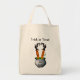 The printing came out very well, better than I had anticipated. The natural color fabric is sturdy with strong seams and comfortable handles. This tote fits easily over my shoulder. As it is filled, the bottom flattens out--very cool! I would buy this product again. This grocery tote holds a lot of groceries! The image quality was very good. The colors were a little darker than I had expected. The darkness may have been due to printing on a natural color fabric rather than on white. The cat design is attractively centered on the tote. The spirit of the design is very lively, just as it appears on the Zazzle website.