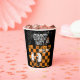 Serve up spooky fun with these Halloween party paper cups. Featuring a festive couple in ghost costumes dancing the night away, surrounded by glowing jack-o’-lanterns and flickering candles, this playful design sets the perfect spooky mood. Ideal for Halloween parties, school events, fall gatherings, or haunted house celebrations, these durable cups add a touch of festive charm to any festive table.