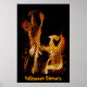 Flames behind a fireplace screen transform themselves into two joyful Halloween dancers on this fun poster!