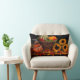 Halloween decoration on an old table with all great gifts of Halloween. Carved pumpkin, sunflowers and more pumpkins make a perfect Halloween photo and therefore a great gift for this spooky holiday.