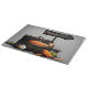 Add style to your kitchen and entertainment areas with a custom glass cutting board. Made with hand-pressed tempered glass, these eye-catching cutting boards are great for prepping and serving and match any décor when printed with your custom text, monogram, or designs. Available in five different sizes, this is the perfect gift for any host or hostess. Dimensions: 15" x 11" (Large Rectangle) 100% food safe. Non-absorbent, non-porous hand pressed high quality stain-resistant tempered glass. Not safe for oven/microwave/dishwasher; hand wash only. Four rubber non-skid feet.