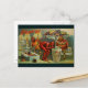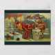 A beautiful vintage postcard featuring a devil and pumpkin characters preparing the Halloween dinner.
