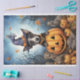 Infuse charm into your crafts with our adorable dog with hat decoupage paper. Captivate hearts as a loveable canine dons a whimsical scene with eery creatures. Elevate your projects with this delightful design that radiates cuteness and creativity.