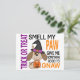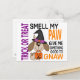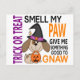 Halloween Dog Smell My Paw t-Shirts, gifts, and apparel with adorable Halloween dog wearing a witch's hat and carrying a halloween pumpkin.