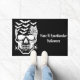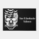 Halloween door mat is shown with a spooky skull print.
