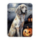 Get your furry friend ready for a howling good time with this adorable dog-inspired Halloween design! Featuring a spooky dog with pumpkins, this design is perfect for pet parents who want to include their four-legged family