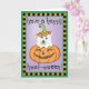 Send Halloween greetings with this card of a cute Eskie puppy in a smiling Jack-o-Lantern. Great for kids of all ages who love American Eskimo Dogs and Halloween. Have a Happy HOWL-oween!