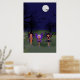 Raven, Phoenix and Eve are walking under the full moon on Halloween night by the graveyard as bats fly overhead.