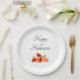 Fall leaves paper plate, with a red and gold fall leaves design and customisable typography lettering. An elegant addition to your autumn or Halloween party or celebration.
