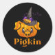 Halloween Fall Pigkin Pig Pumpkin Witch Thanksgivi Classic Round Sticker