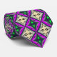 Neck Tie, business work suite attire apparel and casual fashion fun statement accessory with Halloween Full Moon With Bats Green And Purple Abstract Pattern illustration custom printed to order with original artwork design images by The Fabric Seal Tie Shop at Zazzle #ZazzleMade https://www.zazzle.com/store/thefabricsealtieshop is a illustration drawing expanded from the first original design of a cool dark Halloween night of adventure, goblins, ghouls, and trick or treat sweets with bats flying in front of a full moon. The nightly flight flying black bats are out in force for their fright night Halloween flight. Cool looking geometric multi repeating patterned with colours of neon green and purple, creamy yellow and white toned harvest moon glow, deep dark blue and black grey night sky plus the jet black colours of the flying bats all in the mix.