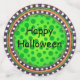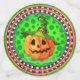 A Bright And Festive Green Halloween Confetti To Celebrate With A Tree Full Of Pumpkins, Bat And Witches Hats And Craved Pumpkins