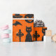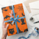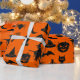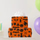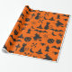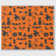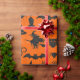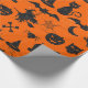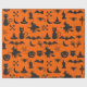 Halloween Fun Theme Wrapping Paper - Ghosts, Pumpkins, Witches, Bats & Bones - in faux Black Glitter on Orange background