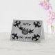 A cute vampire bat in black and grey on a pale grey background with 4 gothic mediaeval fleur de lis symbols. Shown here on a cute and funny romantic greeting card that reads "Batty for you" and "It's true, that this Halloween I'll be thristy for you.". The text is customisable in case you would rather put your own words on it.