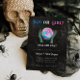 Halloween gender reveal party invitation card featuring illustration of a fortune teller with a crystal ball.