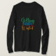 I love this shirt. I had written to the artist asking her if this picture was available on a shirt, and she wrote me back telling me where I could find the shirt. These shirts can be custom made to have a different saying. I loved this saying and went with it. The artist wrote me back later to tell me that she had seen my order go through. How's that for service? Pretty special. It's just as displayed. Perfect!