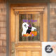 Decorate your glass windows with this Halloween-designed window cling. This cling features a ghost, a black cat, and a Jack O' lantern design.
