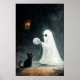 Halloween Ghost and Black Cat Playing with Yarn Poster