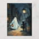 Halloween Ghost and Cat Encounter Postcard
