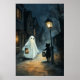 Halloween Ghost and Cat Encounter Poster