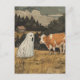 Halloween Ghost and Cow Vintage Farm Postcard