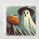Capture the charm of classic Halloween with this 5.25" x 5.25" square greeting card featuring a retro illustration of an adorable ghost cradling a glowing jack-o'-lantern. With wide eyes and a playful expression, the ghost floats gently at the centre of the design, bringing a perfect mix of nostalgia and whimsy to your Halloween celebrations. The pumpkin glows warmly in the ghost’s hands, casting a golden hue that conjures the magic of crisp autumn nights, trick-or-treating, and haunted tales told by candlelight. This card evokes the cosy and mischievous spirit of the spooky season, making it a delightful addition to any Halloween tradition.
