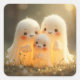 Three adorable ghost-like creatures with rosy cheeks and smiling faces stand together in a soft, glowing light