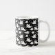 This coffee mug is shown in black and white with a Halloween ghost print design.