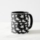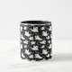 This coffee mug is shown in black and white with a Halloween ghost print design.