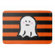 Halloween Ghost on Black and Orange Stripes Bath Mat