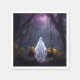 White ghost sitting on a forest swing in dark woods for Halloween party