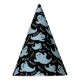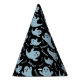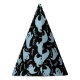 This party hat is shown in a black and ghostly blue colours with a Halloween ghost print.