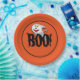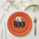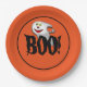 Party paper plate shown in orange and with the word boo and a cute ghost. Customise this item or buy as is.