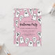 Halloween Spooktacular Party invitation with white ghosts on pink background. Edit with your own party text. Matching items available. Artwork from artists own illustrations. Please contact me for customisation and special requests. © Zoe Chapman Design