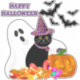 Show off your love for Halloween by decorating with this sticker. This Custom-Cut Vinyl Sticker features a ghost, a black cat, a Jack O' Lantern, and black bats. The Halloween sticker is shown in a extra-large size, other sizes are available.