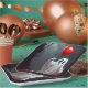 A ghostly figure holds a bright red balloon in a dark, eerie forest with twisted trees
