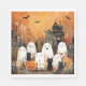 Halloween design with happy ghosts, black cats, bats, pumpkins, and haunted house. Happy Halloween!