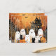 Halloween ghosts, black cats and bats, postcard