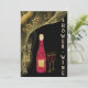 Also, featuring the card is an elegant painted red bottle of wine with Champagne glasses. At the back of the card, there is a frame made of bottles of wine: red, blue and green.